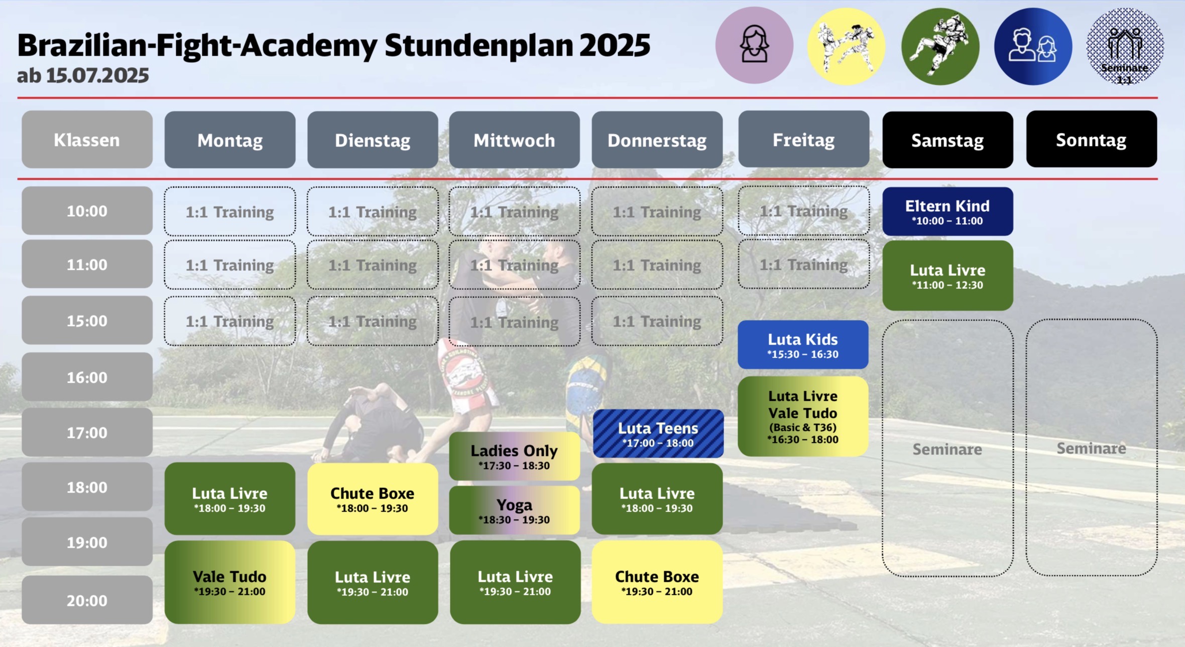 Wir bieten euch keine verstaubte traditionelle Kampfkunst, sondern ein legeres und modernes realistisches Kampfsportsystem zur effektiven Selbstverteidigung mit den brasilianischen Kampfstilen Luta Livre, Chute Boxe und Vale Tudo.